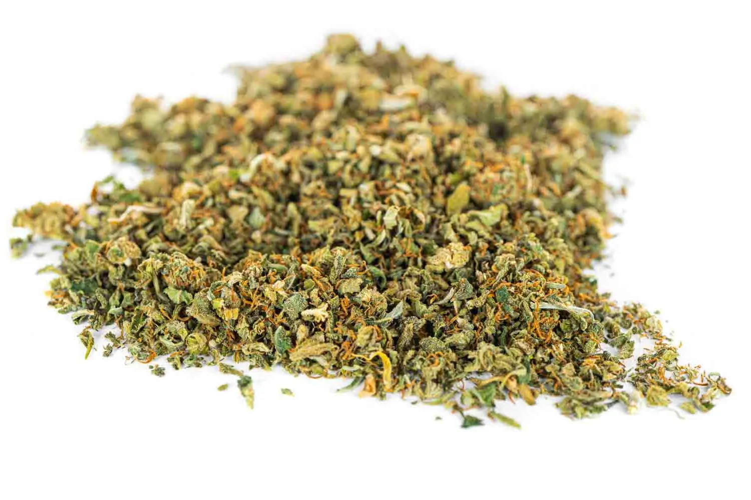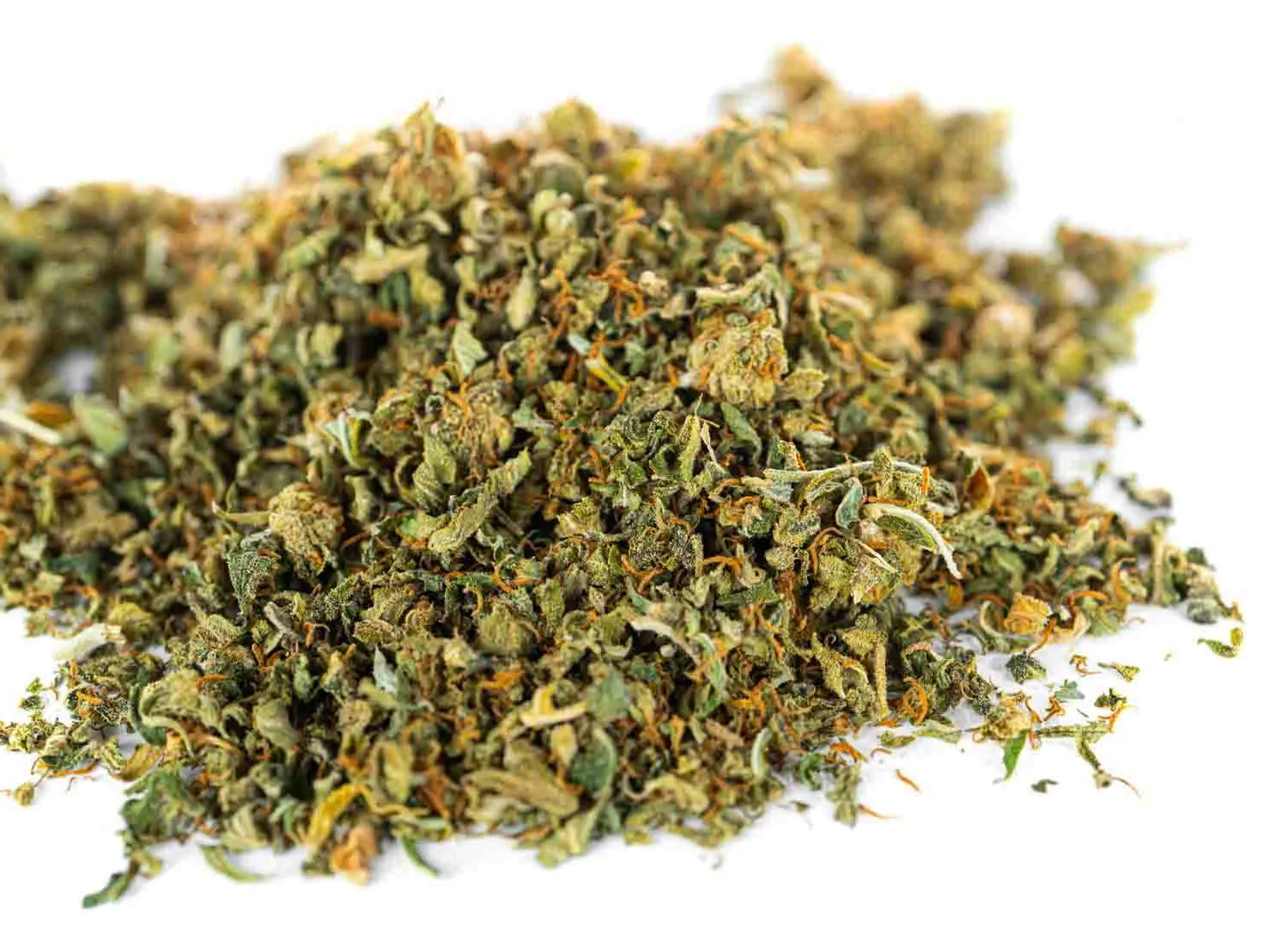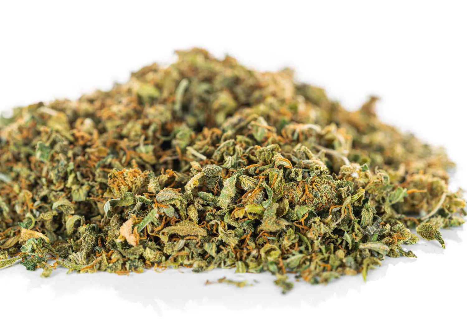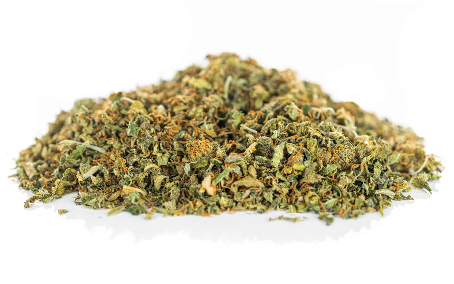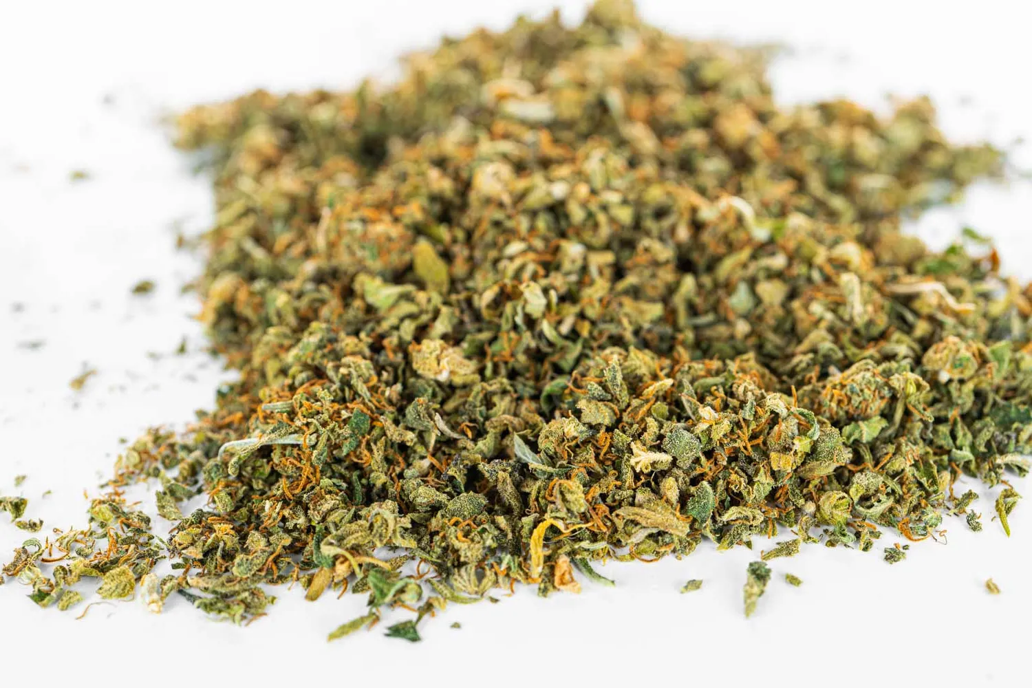 - Wygląd: Mieszanka drobnych kawałków kwiatów i listków w różnych odcieniach zieleni. Całość jest gęsto pokryta widocznym gołym okiem „szronem”, czyli cenną żywicą konopną.