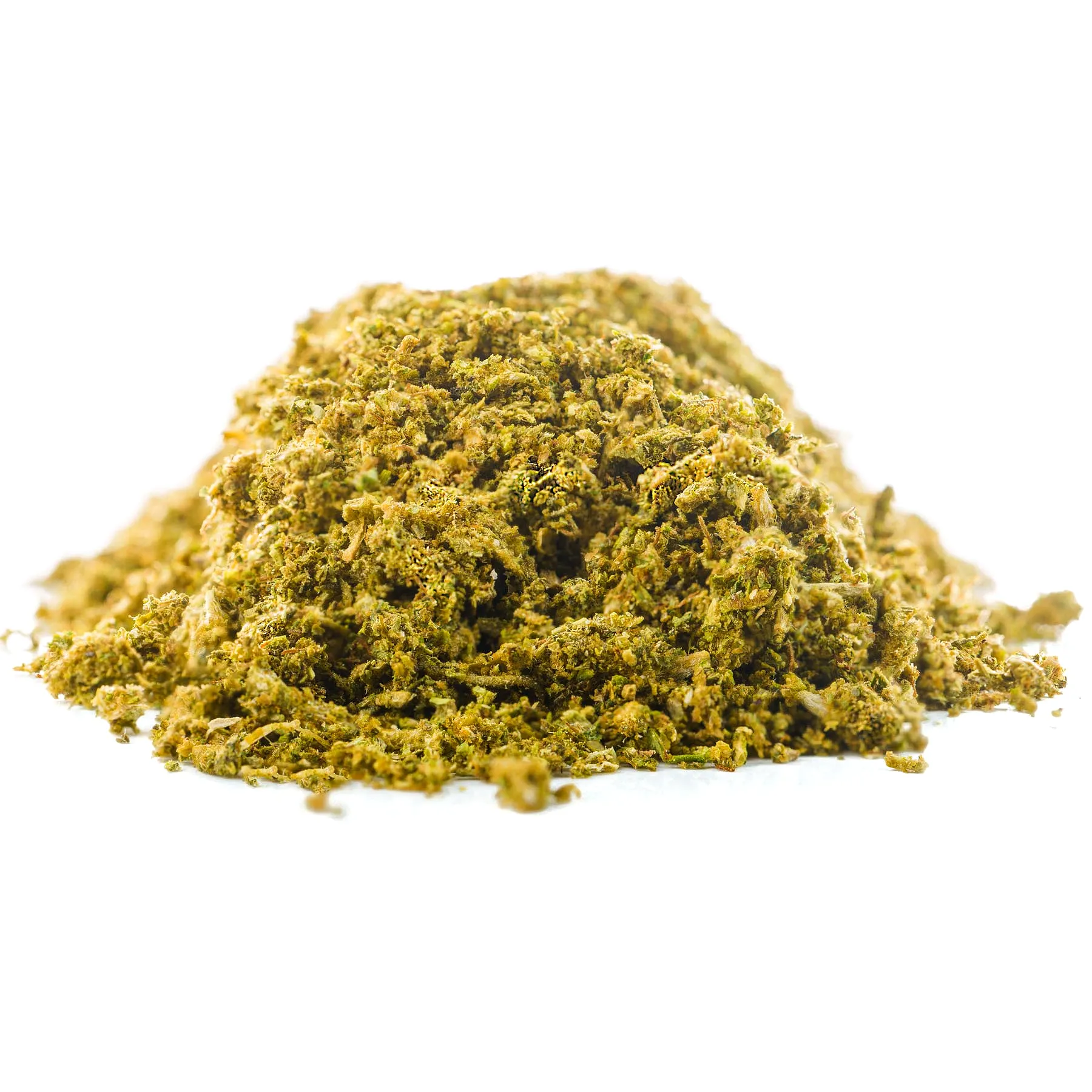 - Wygląd: Produkt składa się z drobno rozdrobnionych fragmentów roślinnych. Charakteryzuje się dużą ilością widocznej żywicy (trichomów), co czyni go lepkim i wydajnym materiałem do dalszej obróbki.